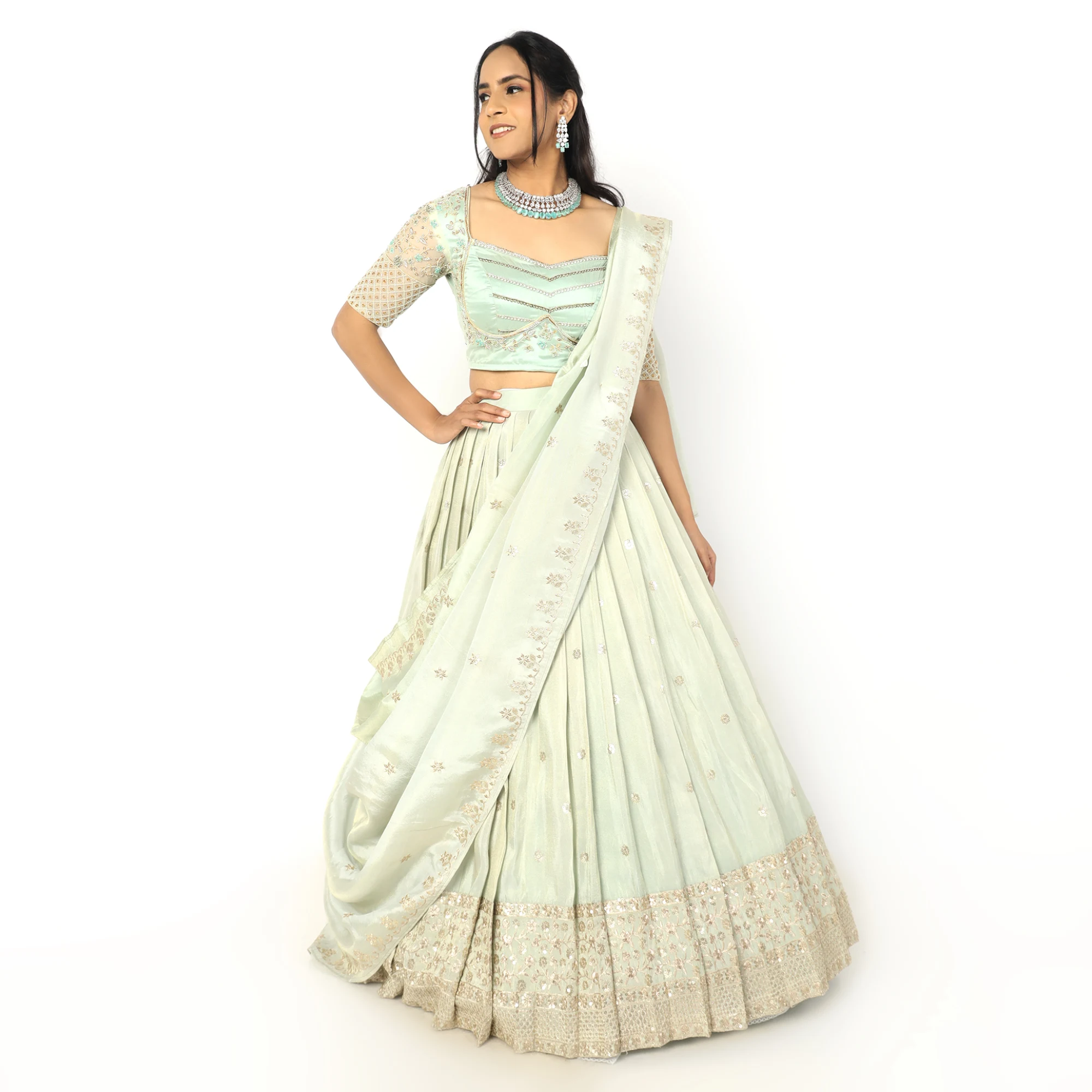 Seafoam Mint Beaded Lehenga Set – Hand-Embellished Silk-Blend Ensemble