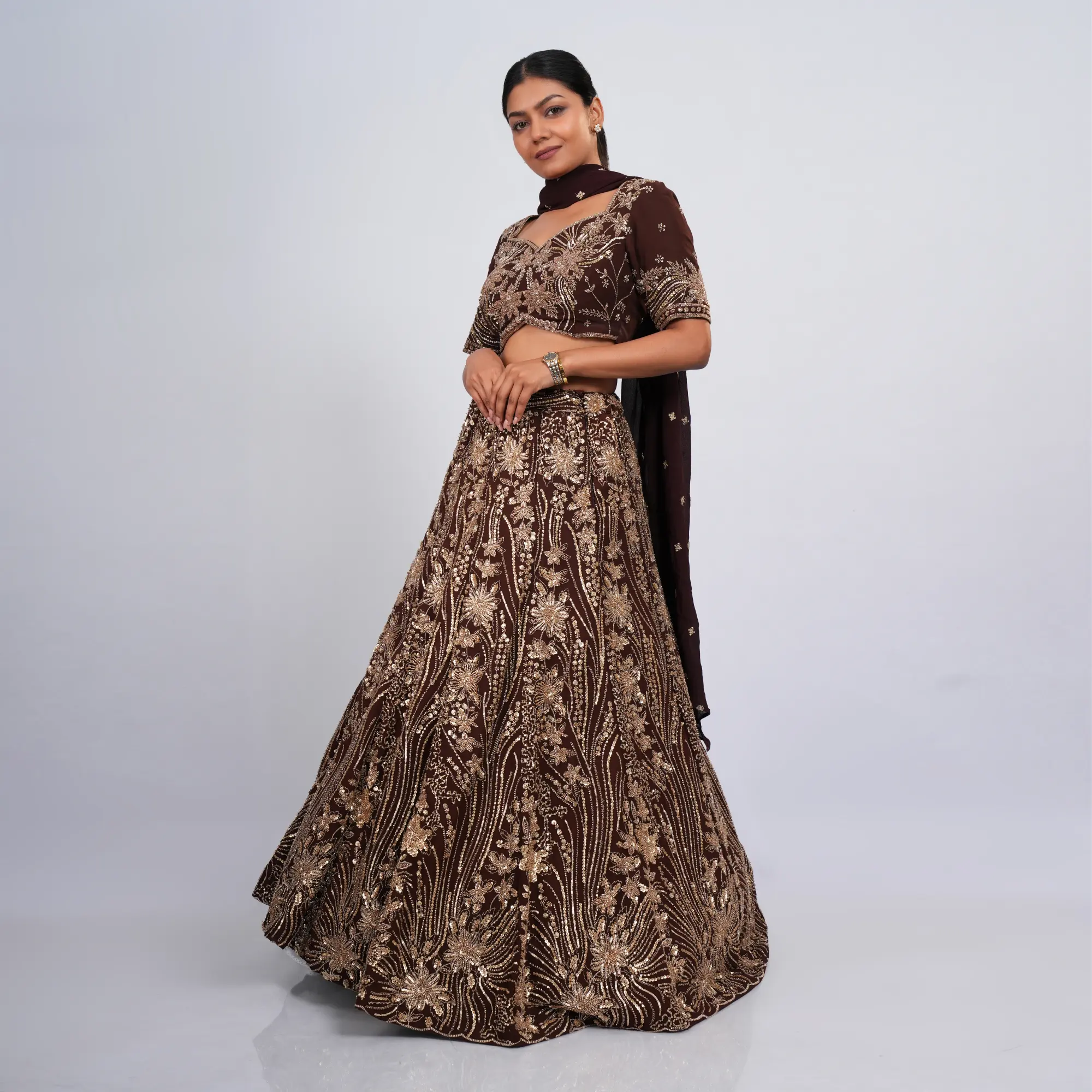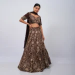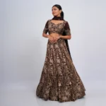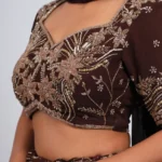 • The Vibe: Moving away from traditional embroidery, this set relies on form and texture to make a statement, offering a fresh, “cool-girl” alternative for modern wedding receptions or glamorous cocktail evenings.