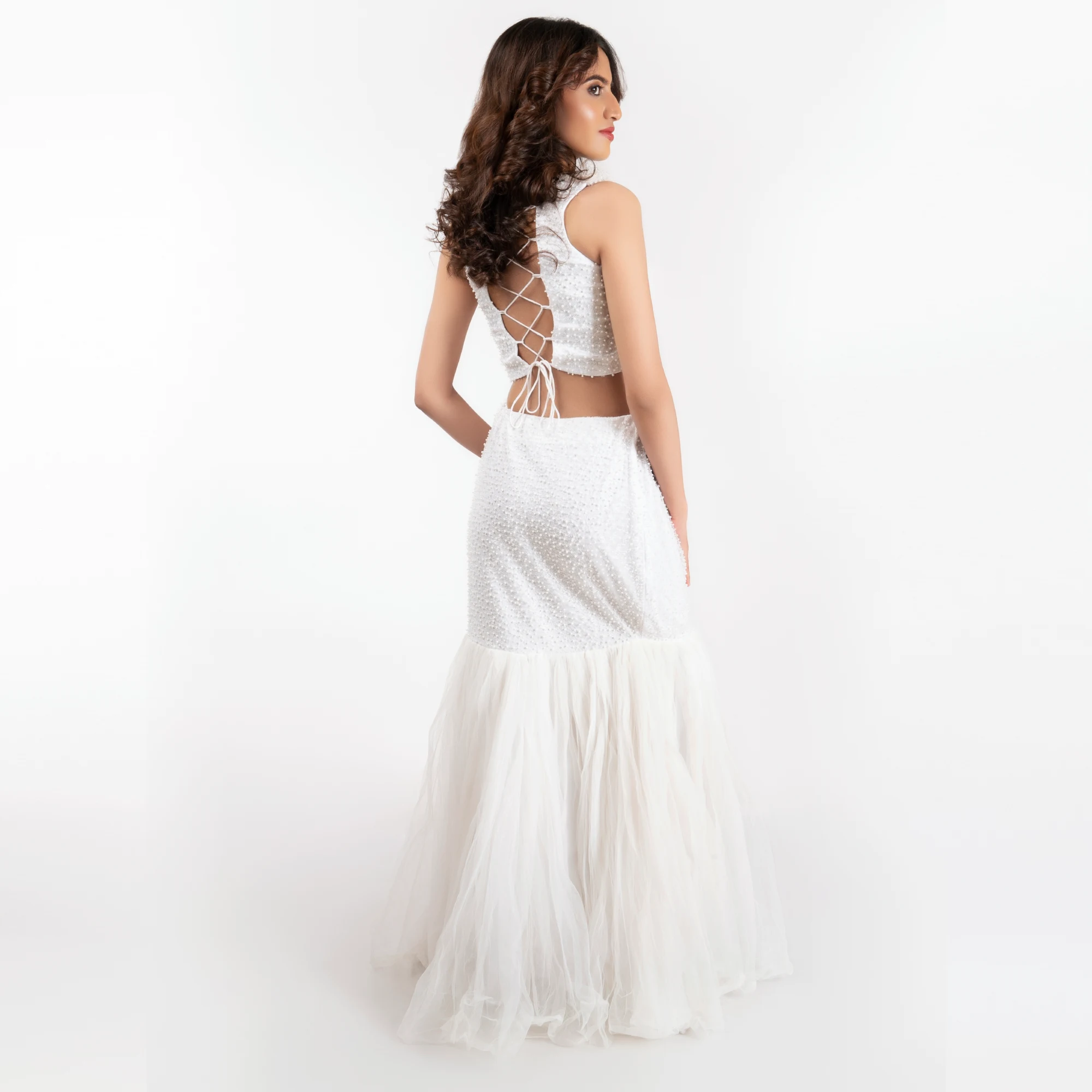 Embrace the beauty of simplicity with our Ethereal Ivory Mermaid Fusion Set. This ensemble is designed for the modern woman who seeks a look that is both sophisticated and high-impact without the need for heavy embellishments.