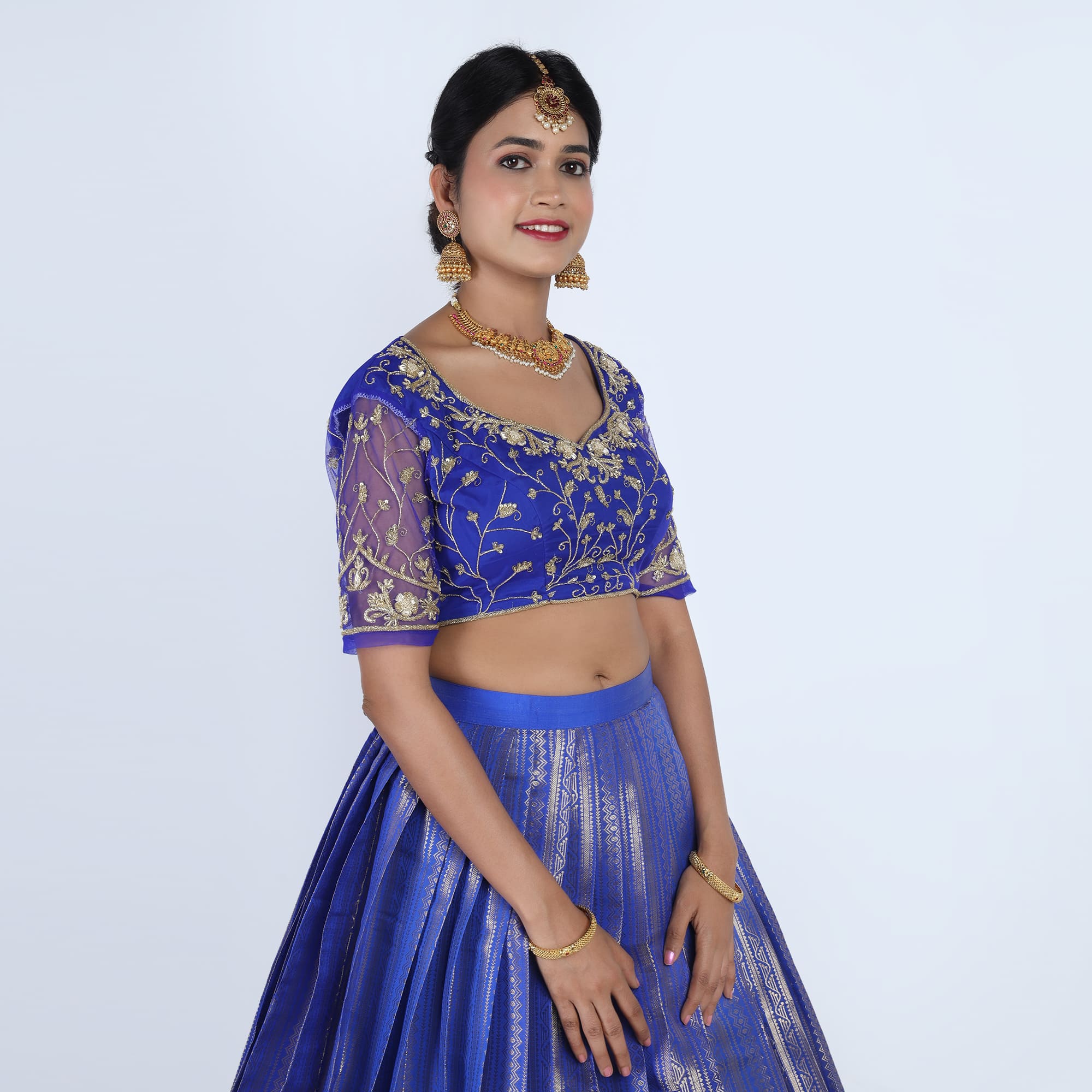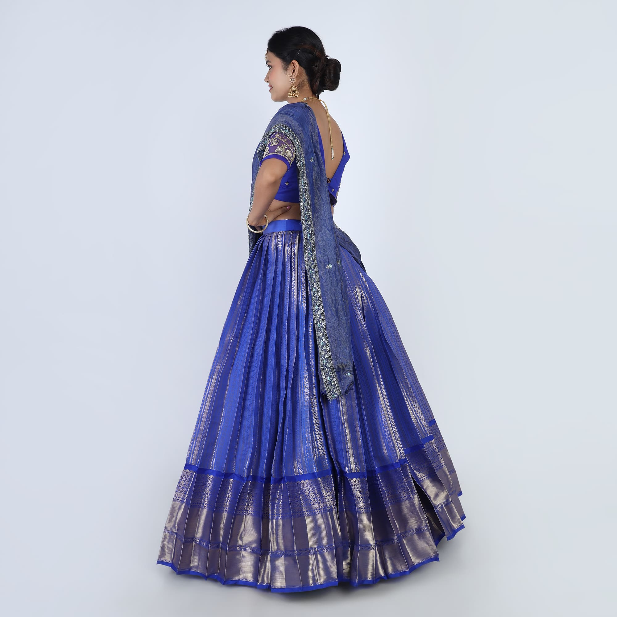 Occasion: Half saree ceremonies, religious festivals, and grand wedding receptions.